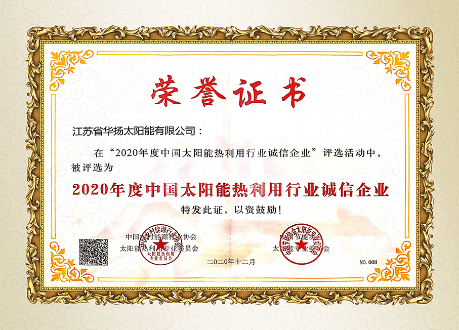 中國(guó)太陽(yáng)能熱利用行業(yè)誠(chéng)信企業(yè)
