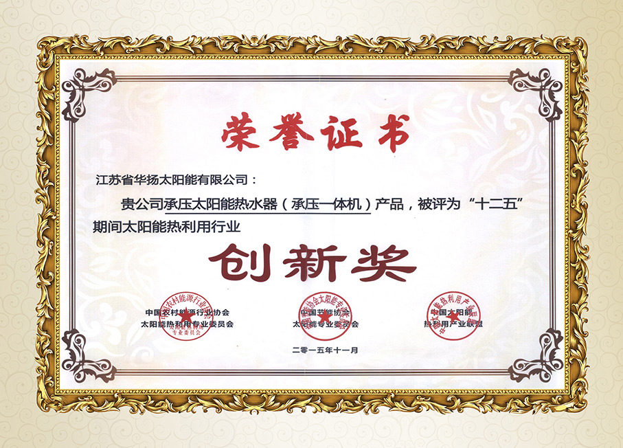 “十二五”期間太陽(yáng)能熱利用行業(yè)創(chuàng)新獎(jiǎng)